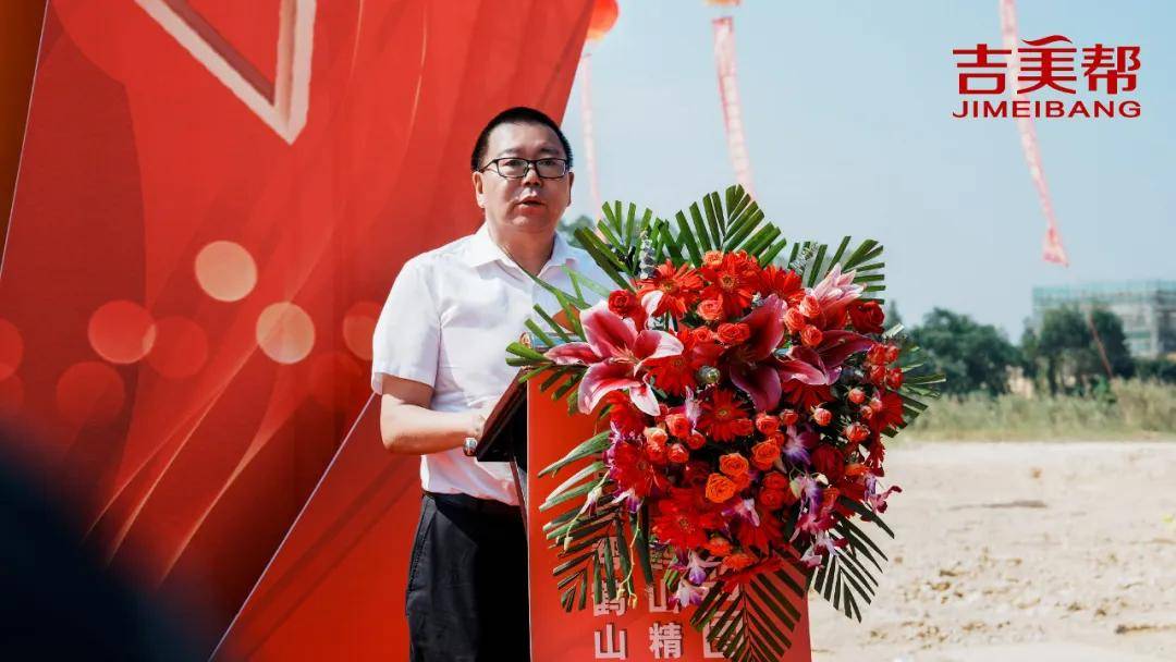 奠基仪式上,广东吉美帮新材料有限公司董事长陈潮汉在致辞中表示,广东吉美帮新材料有限公司成立于2018年,始终坚持以科技创新为驱动的高质量可持续发展理念,始终坚持以客户为中心,为客户创造更多价值的核心价值观。公司已获得广东省高新技术企业,省级专精特新企业、粤港澳大湾区新材料创新企业50强。通过了ISO9001、 ISO14001、十环及3C产品以及知识产权管理认证,目前公司拥有授权专利30余项。